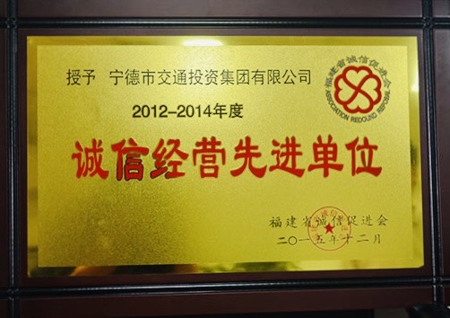 市交投集團(tuán)被福建省誠信促進(jìn)會(huì)授予2015-2016年度誠信先進(jìn)單位